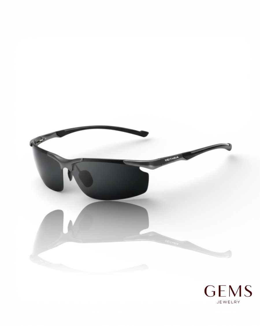 نظارة شمسية رياضية بتصميم قوي ومفتوح، مثالية للأنشطة الخارجية. تأتي بعدسات مستقطبة TAC مع حماية UV400 تقلل الوهج وتوفر رؤية واضحة وحماية كاملة للعين.