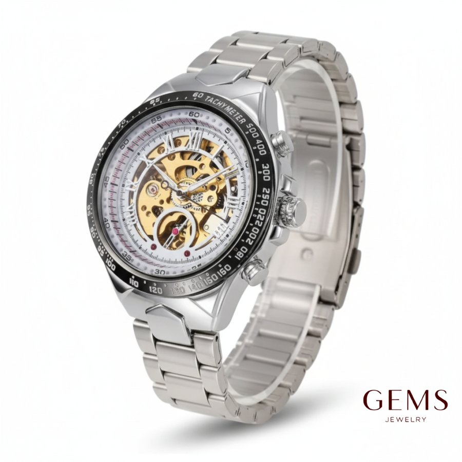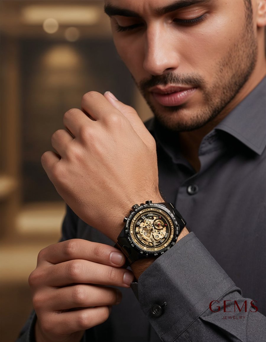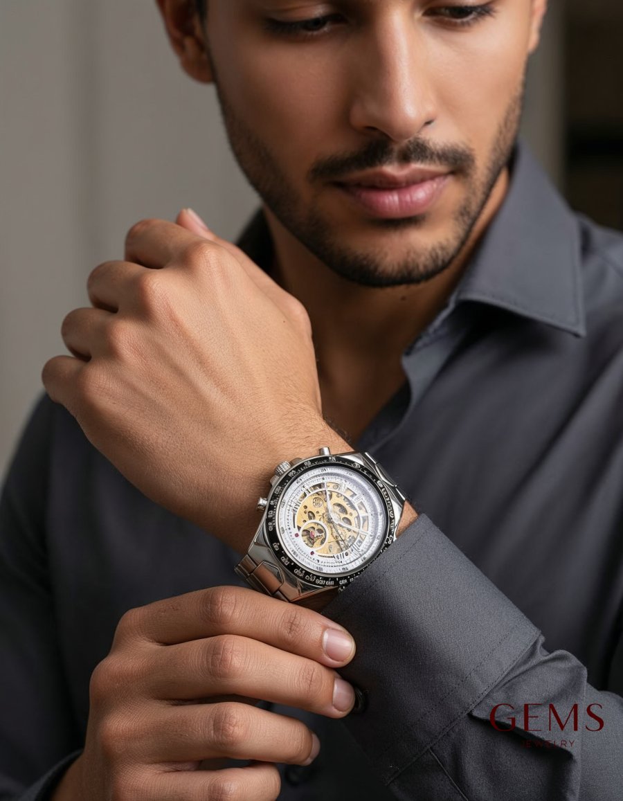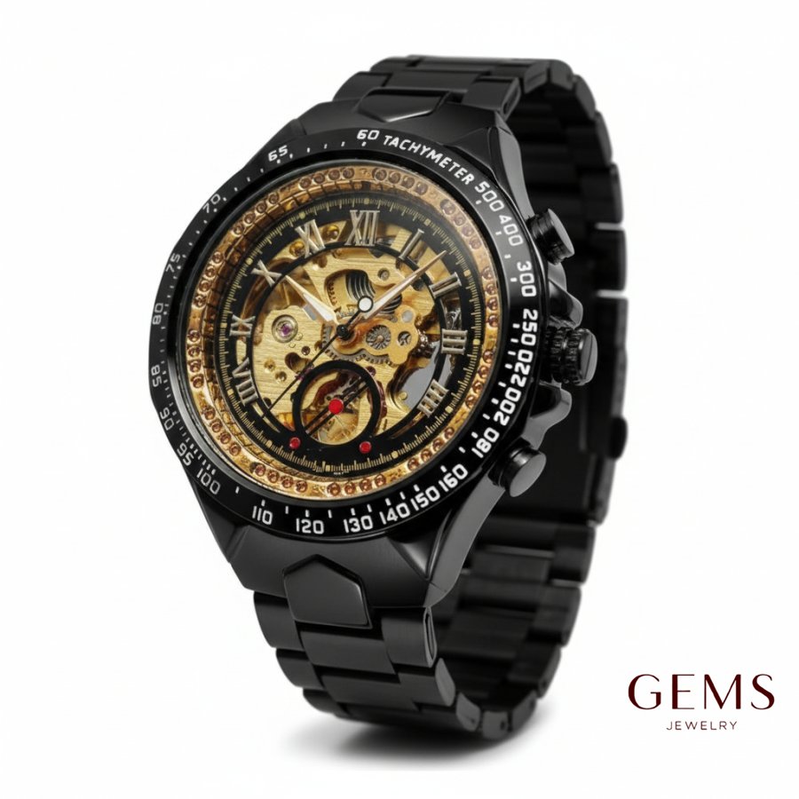 - نوع الحركة: حركة ميكانيكية أوتوماتيكية (تعمل بدون بطارية)